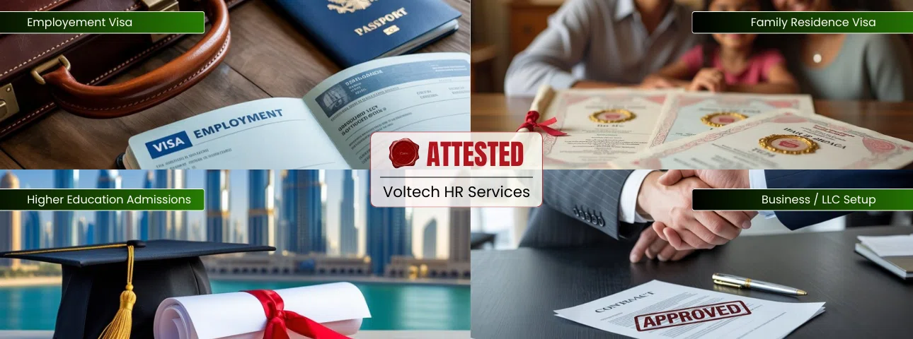 Yes, Voltech HR Services provides full attestation support for any or all major document types, including: educational degree awards, diplomas mark sheets, personal documents such as: birth certificate; marriage certificate; police clearance certificates (PCC); commercial documents including invoices, power of attorney and company documents.